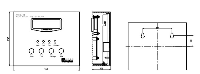 四、利達(dá)LD128EN(D)火災(zāi)顯示盤外形與結(jié)構(gòu)尺寸圖