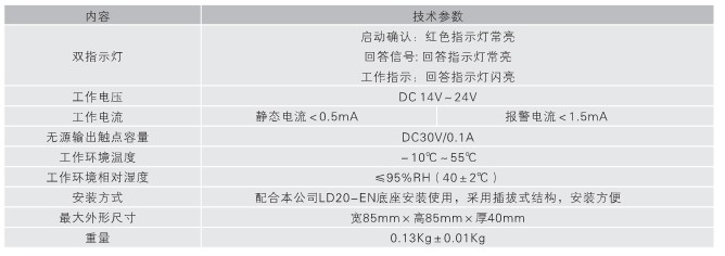三、利達(dá)LD2002EN消火栓按鈕技術(shù)指標(biāo)
