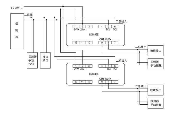 LD6806E中繼模塊主要作用是擴增二總線負載能力,提高消防報警系統的可靠性。當負載(包括探測器、手動按鈕、聯動模塊)超過100mA或線路過長時建議在探測總線上加裝LD6806E總線中繼器,然后在LD6806E的輸出端可再加負載,此外LD6806E總線中繼器也具備短路保護隔離器的作用。滿足GB16806-2006《消防聯動控制系統》和《消防產品3C認證實施規則》。