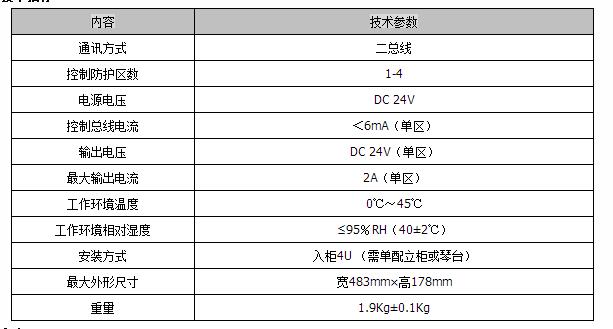 氣體滅火控制盤(入柜式)LD5500EN主要技術(shù)指標(biāo):