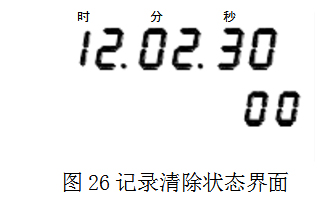 在記錄查詢狀態(tài)按[話2]鍵并輸入二級以 上密碼后,所有錄音內(nèi)容及呼叫、接通時間記錄被清除。在清除過程有動態(tài)畫00的顯示。(如圖26所示) 注:根據(jù)存儲芯片容量不同,刪除時間會 圖26記錄清除狀態(tài)界面 有所不同。